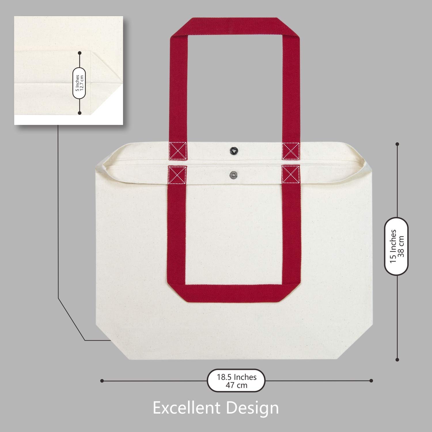 • Red Nature Canvas Tote Bags with Magnetic Snap Reusable Grocery Shopping Bags Sublimation Blank