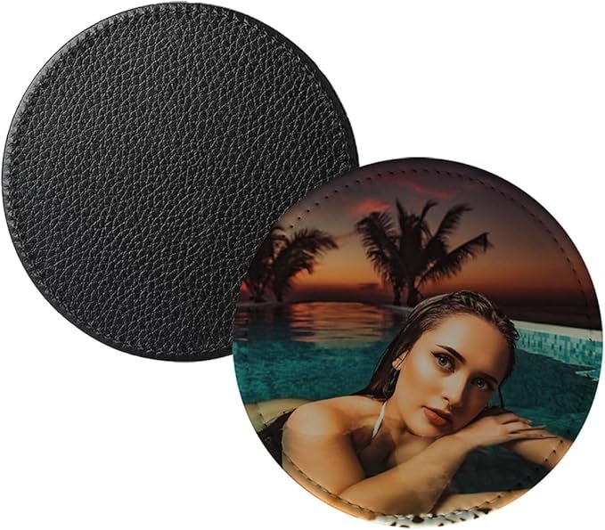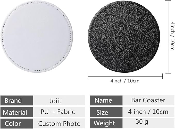 • Round 4 Inch 10 CM Black White Leather Sublimation Coasters Blanks Bulk with Sewn Edge Cup Mat
