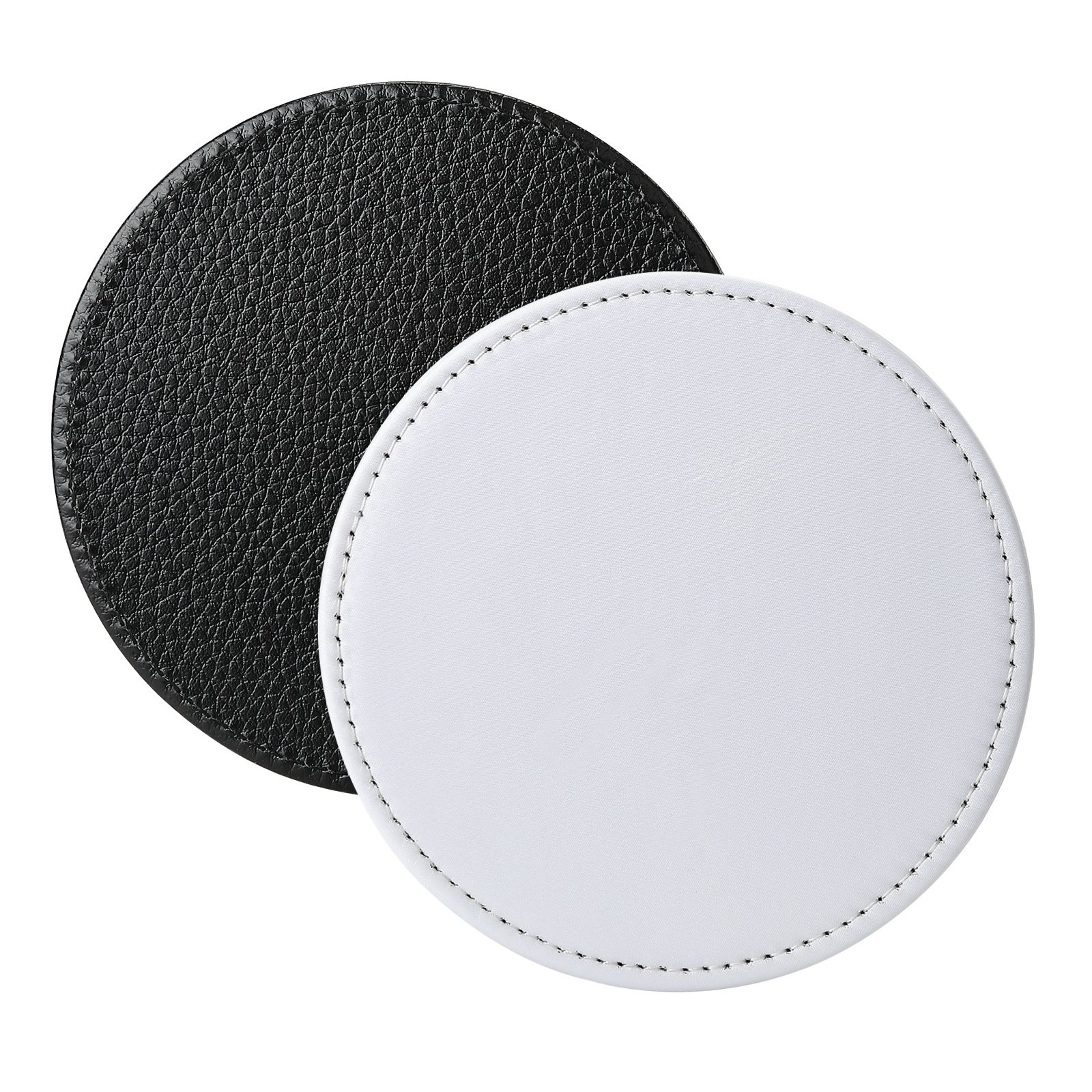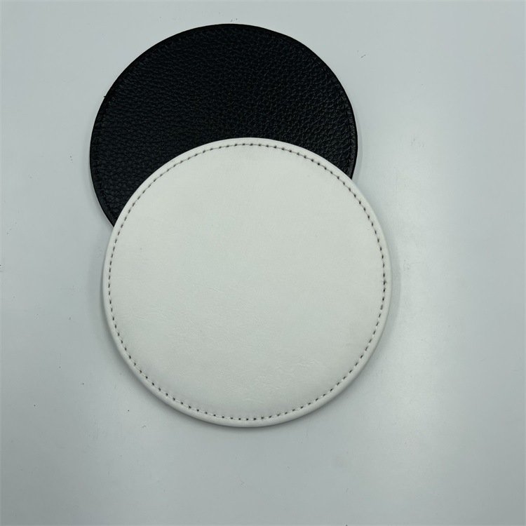 Round 4 Inch 10 CM Black White Leather Sublimation Coasters Blanks Bulk with Sewn Edge Cup Mat