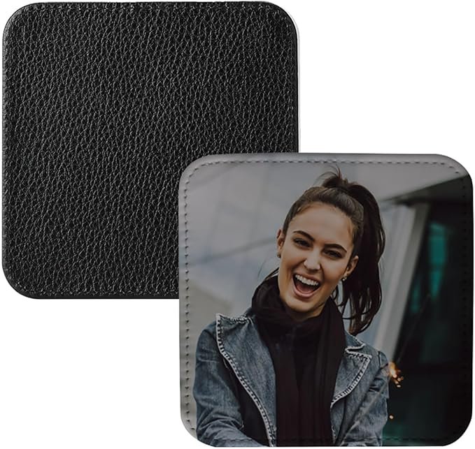 • Square Black White Leather Sublimation Coasters Blanks Bulk with Sewn Edge Cup Mat