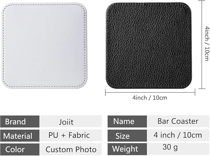 Square 4 Inch 10 CM Black White Leather Sublimation Coasters Blanks Bulk with Sewn Edge Cup Mat